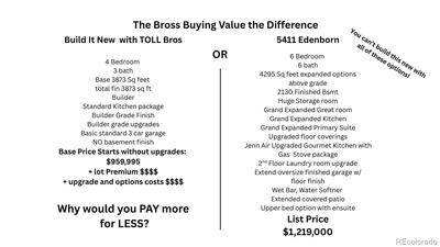 Why pay for new construction with basic finishes and limited space, compare the costs! You can own a fully upgraded, expanded Bross model luxury home in MontaineâCastle Rockâs premier community surrounded by trails, open space, and sweeping mountain views? This exceptional Toll Brothers semi-custom residence offers 6 bedrooms, 6 bathrooms, 4,295 finished square feet above grade plus a 2,130-square-foot finished basement, delivering the space, design, and completed upgrades most new builds simply donât include. A grand two-story foyer opens into an expanded great room centered on a dramatic floor-to-ceiling stone fireplace with wrought-iron accents, designer lighting, and upgraded flooring throughout. The grand expanded kitchen is designed for everyday living and entertaining, featuring JennAir gourmet appliances, a gas cooktop, honed quartz countertops, upgraded cabinetry, oversized island, walk-in pantry, and open dining areas flowing to an extended covered patioâperfect for Colorado evenings and mountain sunsets. The expanded main-level primary suite offers a spa-like retreat with soaking tub, glass shower, and generous walk-in closet, while a flexible study or guest room adds versatility. Upstairs, spacious secondary bedroomsâincluding an ensuite optionâpair with the convenience of a second-floor laundry, rarely found in base new construction. The fully finished basement enhances entertaining with a wet bar, media and game areas, added living space, and a huge storage roomâimprovements costly to complete after buying new. Additional highlights include an extended oversized finished garage with floor coating, EV outlet, water softener, whole-home humidifier, and upgraded HVAC. Enjoy Montaineâs resort-style amenitiesâclubhouse, pool, fitness center, hot tub, and scenic trailsâminutes from downtown Castle Rock and I-25, delivering more space, more upgrades, and immediate move-in luxury without the wait or added cost of building new.