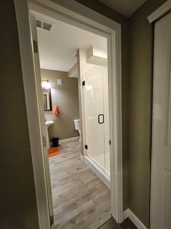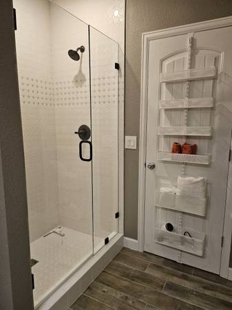 * Private Bath: Spacious, private bathroom featuring a large walk-in shower.