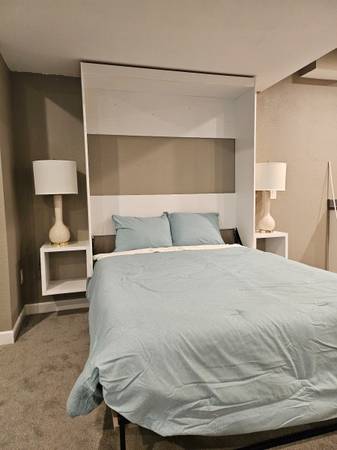 * Convertible Space: Features a space-saving, queen-size Murphy bed with a premium memory foam mattress, dresser and closet.