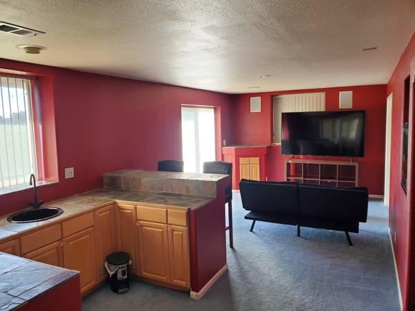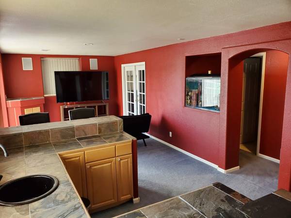 * 1 bedroom studio apartment: Kitchenette, full private bathroom with jetted bathtub, 75" TV, small fridge, aquarium, walkout basement, patio ideal for grill, direct view on golf course / mountains