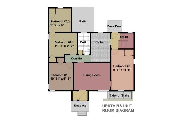 - Sizes: Bedroom 2.1 ~11'4" x 9'6"; Bedroom 2.2 ~10' x 9'6".