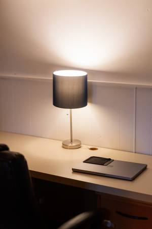 ∙ Fully furnished with a full-size bed, couch, seating area, and desk