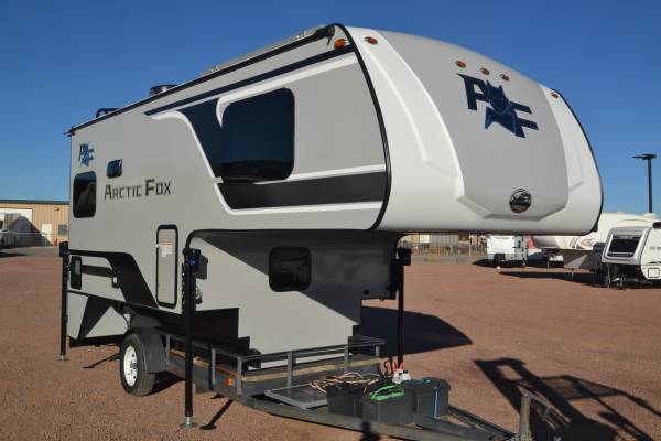 2026 Northwood Arctic Fox 865 for a short or long bed truck! This true four season camper comes with 400 Watts of Solar, Thermal-Pane Windows, 11K BTU Air Conditioner, Heated Holding Tanks, 6 Gallon Gas/Electric Water Heater, Rear Electric Awning with LED Lights, Sliding Battery Rack, Dual 30 lbs LP Tanks, Roof Rack & Ladder, Electric Jacks w-6 function remote, Outside Speakers, “Joey” Sliding Storage Tray, TV Antenna, Diamond Plate Knee Wall Armor, microwave, 8 cu ft 12V Fridge, Large 22″ Oven and Multi-Speed Reversible Fan Vent. Stop in and visit our two indoor showrooms or call (719)545-3000 for more info. Stock #120221