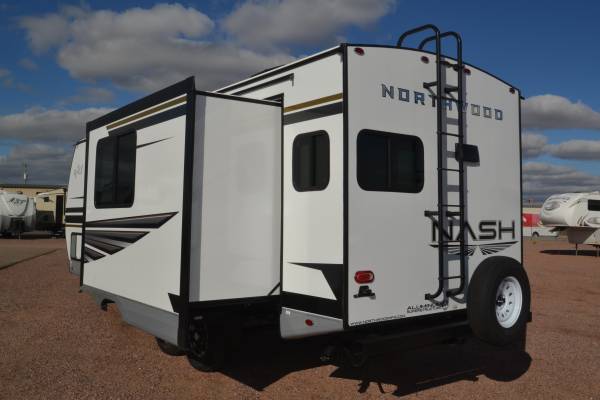 2026 Northwood Nash 25KT with 2,000-Watt Inverter & 400 Watts of Solar! Other features on this four season 28' trailer include 32" 12V LED TV, Premium Fan Vents, Theater Seating, 15K BTU Air Conditioner, Northwood Built Ironhorse Chassis, High Density Block Foam Insulation, E-Z Lube Axles, 16″ Aluminum Wheels & Tires, Shocks On All Four Wheels, 12-Volt Power Tongue Jack, Heated and Enclosed Tanks, Thermal Pane Windows, Two 30lbs LP Tanks, Rear View Camera Ready, Exterior HD Ladder, Exterior Marine Grade Speakers, LP Quick Connect for Gas Grill, Black Water Flush System, Exterior Shower, 10 Gallon Gas/Electric Water Heater, 12V Awning with LED Lighting, Generator Ready, 2″ Rear Receiver Hitch, AM/FM Stereo w/Bluetooth, 10 Cubic Foot 12 Volt Stainless Steel Refrigerator, Northwood TruRest 60X80 Queen Mattress with USB Charging Ports & 110V Outlets on Both Sides of Bed and so much more! Boardman RV is Colorado's Northwood dealer. Call (719)545-3000 for more info. Stock #158797