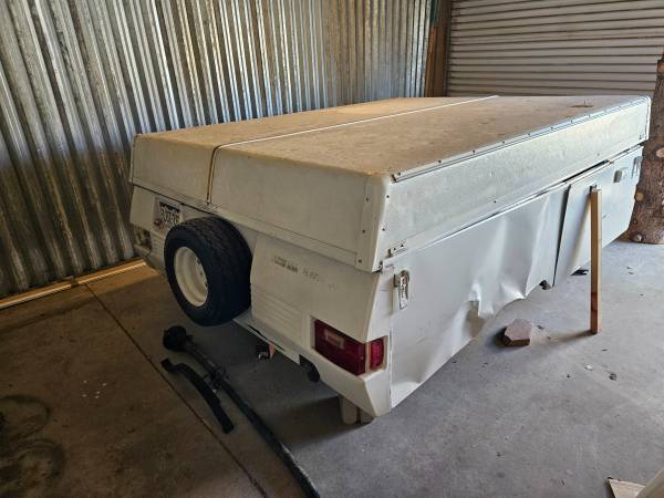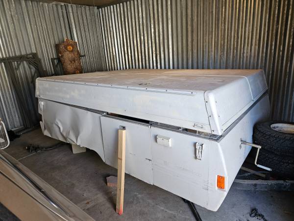 1990s Pop Up Camper. Needs work. Axle came off on highway with previous owner. Damaged side panels. Pop up works good and interior is in good shape for its age. Would have to be hauled away on a...