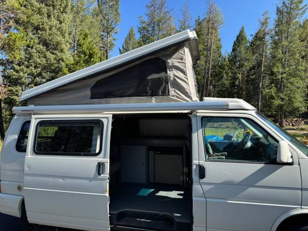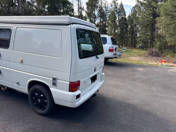 Now its your turn to have adventures in this 1997 VW Eurovan. Well loved and cared for. This Eurovan has been upgraded with a lift kit, Fox Shocks and larger tires and new rims. In addition, it has a new canopy pop top and struts, Kenwood stereo and Alpine speakers, and a upgraded tow hitch for bike racks. All major services were on time. Also has a second row bench seat that is removable.