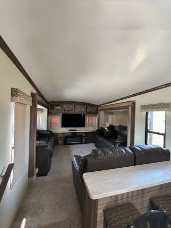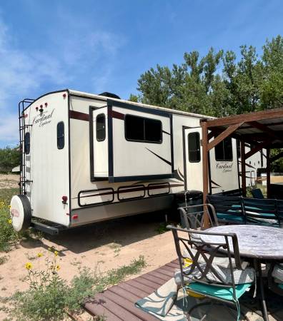 Looking for the perfect fifth wheel that feels like home, without the heavy wear-and-tear? This 2018 Forest River Cardinal Explorer 392 is a rare find. One owner, gently used, and immaculately maintained—it has spent its life parked at a private lake in eastern Colorado, only towed once (from the dealer, just 60 miles).