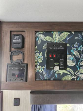 This 2021 Wolf Pup 16FQ is the perfect compact travel trailer for your adventures. With a lightweight build at 3500lbs, it’s easy to tow while offering features like a queen-size bed that folds into a couch, full bathroom, and kitchen with a two-burner stove, microwave, and fridge that can be ran on electric or propane. We've replaced half the dinette with a movable desk chair that is the perfect place to work or eat at the table. The awning is electric with LED blue lights and outlets on the outside of the camper for easy access. There is a working electric or propane hot water heater, electric air conditioner, and propane furnace. Camper has been upgraded with a porcelain toilet, cover added to bathroom vent, upgraded tires, new brakes, closet shelves added, a new foldable mattress, and all pipes and cabinets have been insulated. Comes with a 36 gal portable holding tank, hitch and all sway bar accessories, surge protector/ electric cord, hitch locks, sewer accessories, wheel chocks and stabilizing blocks.