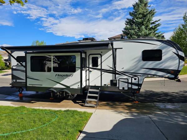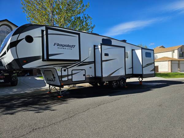 2022 Forest River Flagstaff Super Lite 529RBS, 2022 Forest River Flagstaff Super Lite 529RBS 36' Fifth Wheel. 4 Slide Outs, awning, Sleeps 10, dual A/C Units in roof ducting, 35,00 BTU Furnace in floor ducting.