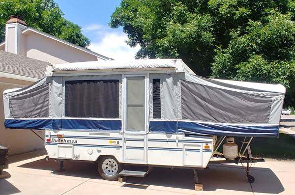 1996 Dutchman popup camper. Model 1001XS. Very good condition. External storage compartment. 3 way refrigerator. heater. newer 9 gallon fresh water tank, newer power converter/controller,...