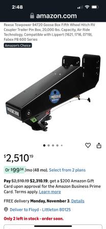 Fifth Wheel Hitch Trailer Pin Box Air Ride 20,000 LBS. I have posted a picture of a new one from amazon for comparing prices. Call Floyd at