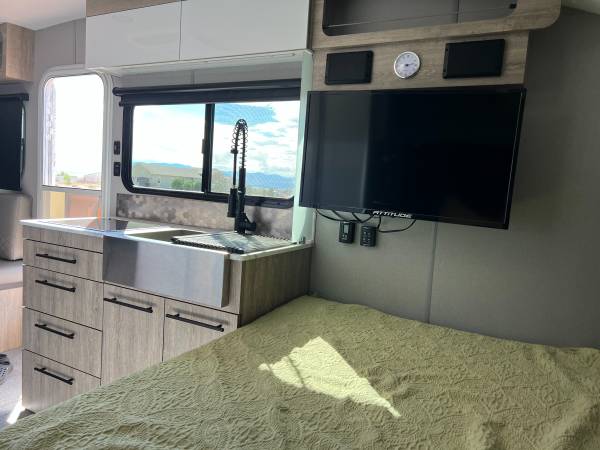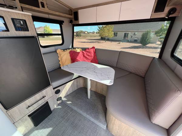 This trailer has been well-maintained, smoke-free, pet-free, and is eager for more road trips. Rover lift, off-road tires, and off-grid solar upgrades allow for adventure off the beaten track. Panoramic front window and large dinette area (converts to another sleeping bed) provide comfortable spacious lounging area with a view! Intech has proven to be a premium high-quality travel trailer company.