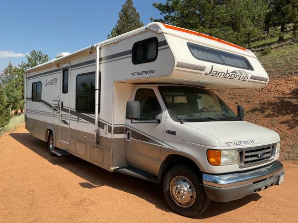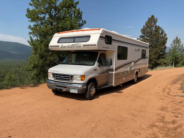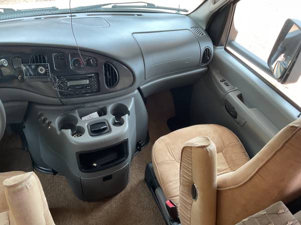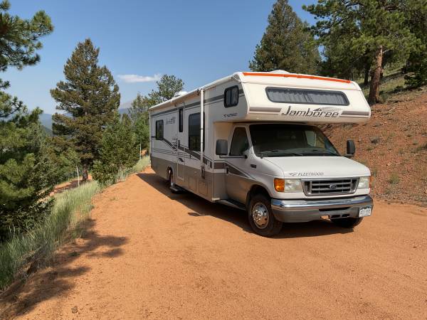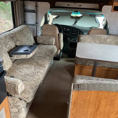Ford E-450 6.8L V10 with 50,000 miles, runs strong. 29 feet long easy to drive and park. Sleeps six comfortably.