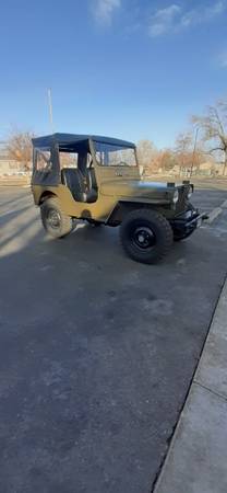 1948 CJ2A Willys, 4-134 L Head Motor, 3 speed T-90 Transmisssion, Dana 41 Rear Axle, Dana 25 Front Axcle, Converted to 12 volt systen, New Clutch, exhaust, oil pump, water pump, distridutor, ignition, suspension, Front Sterring system rebuilt, Just installed all new brake system, Vynl top and doors in excellent condition. Since I rebiult this jeep I have under 200 miles on it. Many new parts and extra parts to list in this ad. I have copies of all the reiepts/parts from the previous owner and I have put into this jeep. Clear Title. From researching through the DMV Im the 3rd owner. This jeep is ready to go. Will concider any offer. Pleae contact me with and questions you might have.