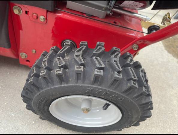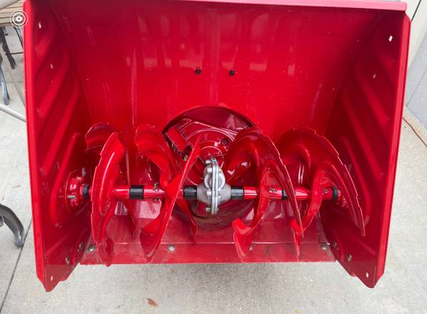 Dad purchased this Troy built snowblower year and a half ago. It’s brand new never been used. Has pull start electric start. Has forward and reverse. You can throw the snow in any direction. It’s just too much power for dad. He decided to call someone in to shovel his driveway. He paid $1200 for this unit. This is a great buy. $750 OBO