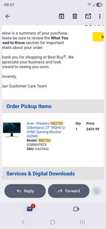 Acer XB273U monitor. literally brand new. Did not have enough GPU power for dual 165hz setup, so ended up using only one monitor. This one is just in my basement forever.
