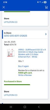 ARRIS SURFboard modem, Model S33v3. This was purchased 4 months ago and works perfectly fine we just switched over to fiber. Take a gain with my loss.