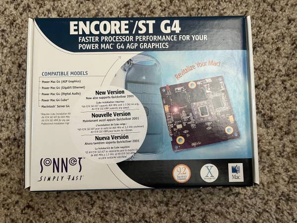 Box is in excellent shape. This is a box for a really rare and sought after G4 upgrade. These complete in box go for around $400+. While I don't have the actual upgrade chip unfortunately, you can add this to your Apple collection as a really cool display box with great history!
