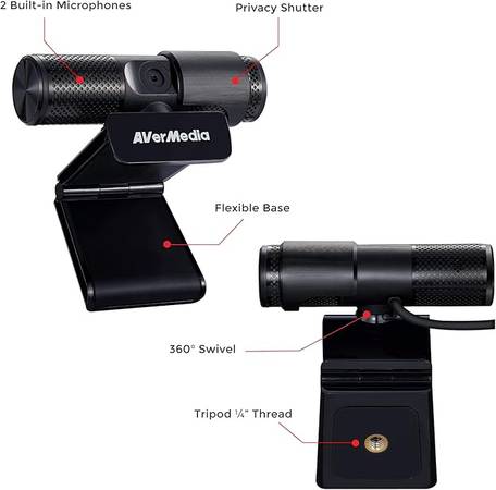AVerMedia Live Streamer Cam 313 - Full HD 1080P Webcam with Privacy Shutter, Dual Microphone, 360 Degree Swivel for Video Conference - NDAA Compliant (PW313)