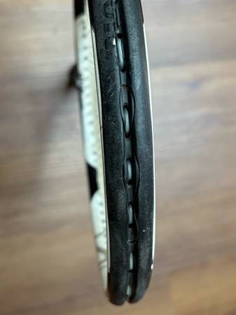 Strings in good condition. It has some light scratches from use. Head size is 100 sq in. Grip is 3 3/8. I have two of these if you want more than one.