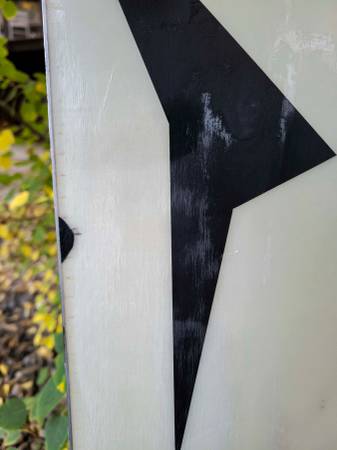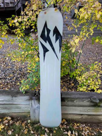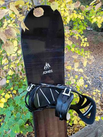 Excellent condition Jones snowboard that was part of quiver, so it did not see a ton of use. This setup hasn't been used for a few seasons, so make it more appealing and easier to sell, it has already been given a full shop tune. Barely any Ptex has been needed on the base. After the tune, the wax has been left on to protect the base and the edges since it was not meant to be ridden right away. This board has never had any major damage, such as: a delamination, blown, or separated edge. There are some nicks and scratches on the top sheet from normal use. Back in 2018 the board did endure a small core shot. The experts over at the Eskimo Ski Shop repaired that area and there have been no problems with it since. (see the pictures)