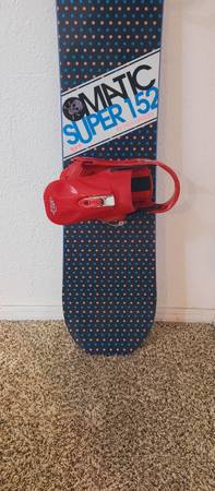 O-MATIC "Super" by Tara Dakides 152cm Snowboard + BURTON Custom Bindings sz. Medium