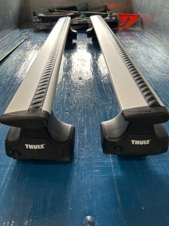 THULE "AEROBLADE" CROSS BARS FOR A MINI OR ANY COMPACT CAR. MINT, LIKE NEW. CLAMPS AND RUBBER PADS INCLUDED. OVERALL LENGTH IS 48 INCHES. CLAMPS CAN BE ADJUST FOR SHORTER LENGTH. PERFECT FOR KAYAKS, SKI RACKS AND NUMEROUS OTHER THINGS. WILL MEET AT A VERY PUBLIC PLACE WITH LOTS OF SECURITY CAMERAS FOR YOUR PEACE OF MIND. CASH ONLY