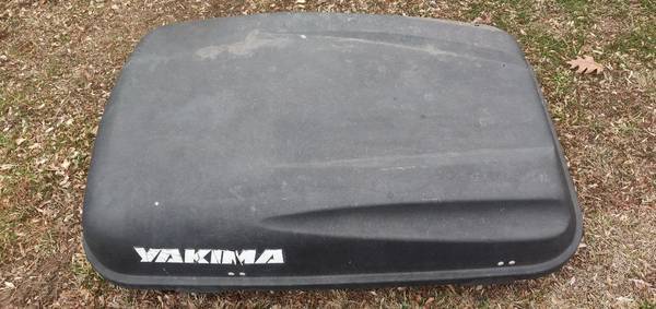 Up for sale is a used Yakima rooftop cargo box. It is 36"W x 52"L, 7" tall in the front and 12" tall in the back. The lock is included but I do not have the key