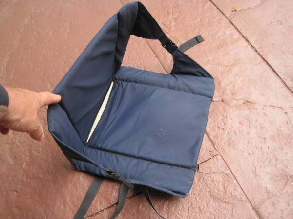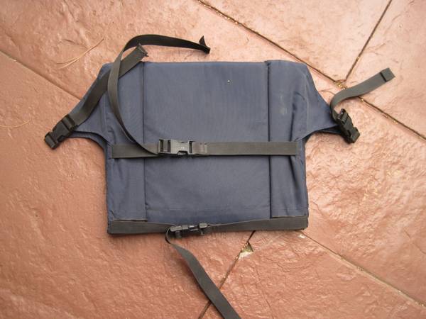 three panels, so you can lay it flat for a shared seat cover, or it can be folded underneath a canoe seat or bleacher seat. clips lock it into place.