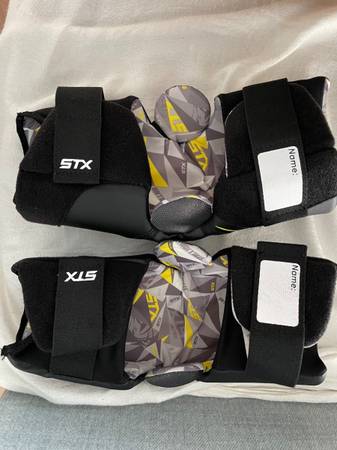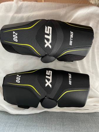 Like new Stallion STX 200 elbow pads Black with green and white printing Worn during just one practice indoors and laundered afterwards Adult size L