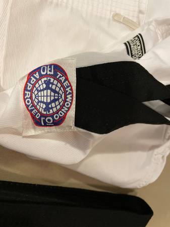 Mixed lot of Tae Kwon Do gear: 1. Brand new CAF black belt uniform: Adult size 3 (black-belt shirt, pants) $150 2. Brand new 1st degree black belt: Adult size 5 $15 3. Brand new Mooto forearm...