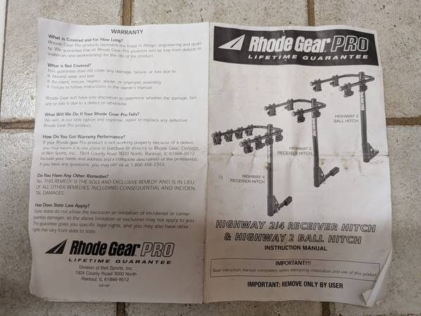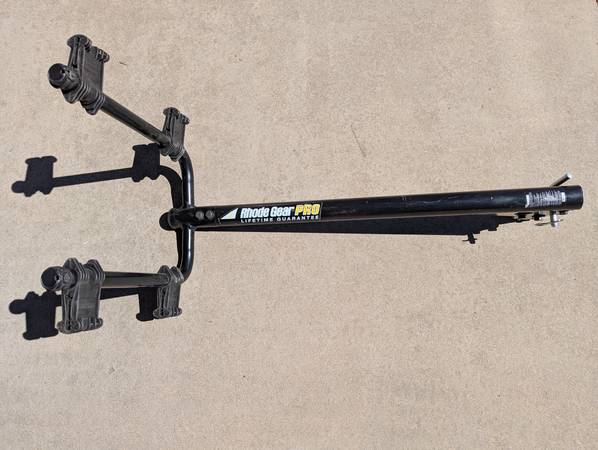 Rhode Gear Pro bicycle rack for trailer receiver hitch Very good condition. Simple 1.25" receiver or bolt-on installation Pull pin to lower tower for tailgate hatch access.