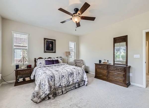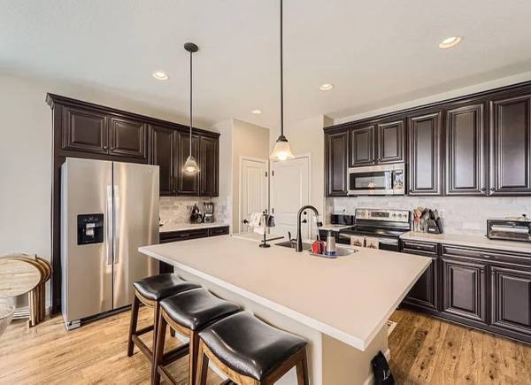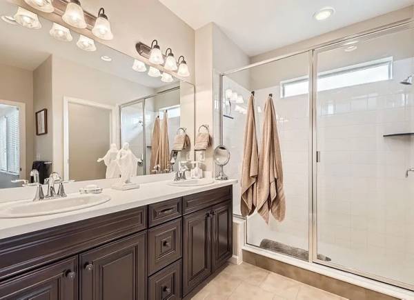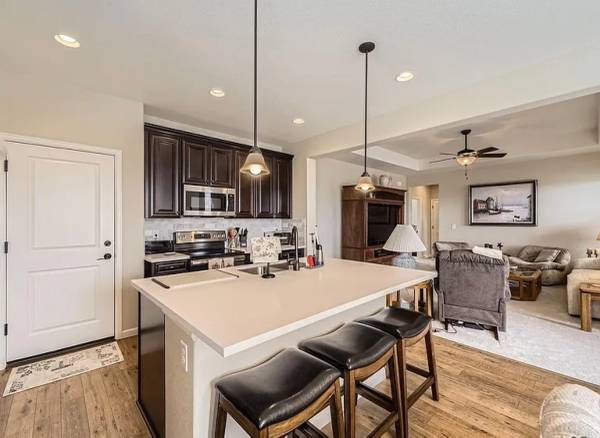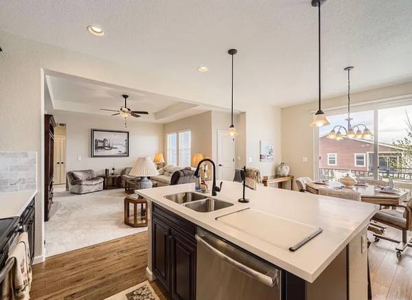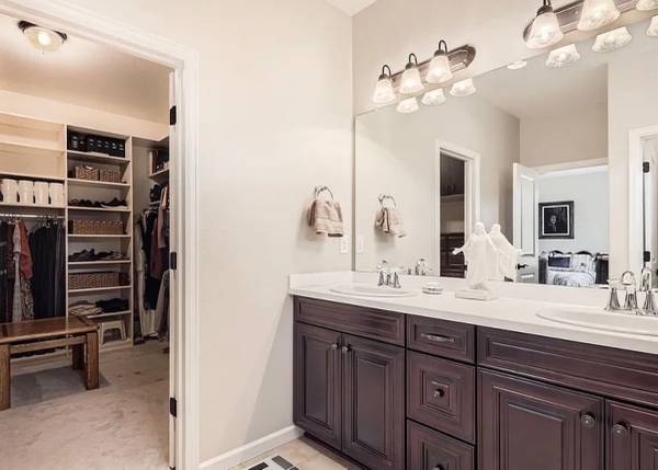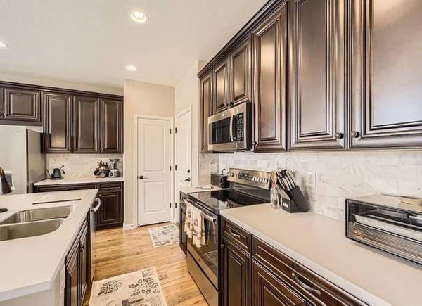 The full bathroom is finished with classic subway tile and a large linen closet, while the laundry area is enhanced with extra cabinets above. Retreat to the master suite, which offers breathtaking mountain views and no rear neighbors thanks to a green space behind the home. The master bathroom features double sinks, upgraded cabinetry, taller shower doors, a separate toilet area, and a huge walk-in closet equipped with a professional closet organizer system. The Skyestone Lodge offers a workout area, outdoor pool, pickleball courts, lending library and community room. There are many clubs to join and events to enjoy. Miles and miles of walking/biking trails out your front door!