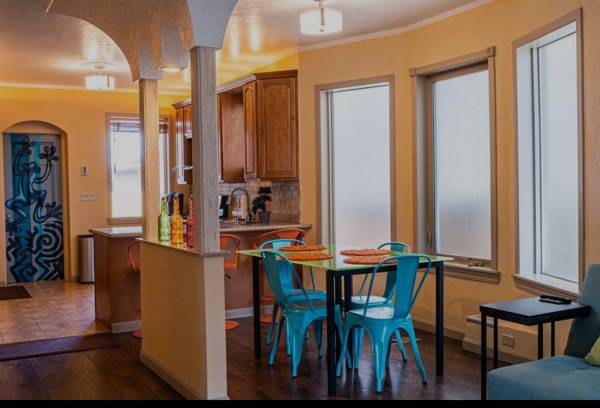 Baker Beauty powered by the Sun! Perfect property for someone that wants to live in one portion and rent out the other level. Zoned for Business or residential. Looking to run a business on one floor and live on the other? Historic home with tons of character and a fabulous open floor plan with decorative fireplace. Kitchen has newer cabinets, granite countertops and stainless appliances. The charm and architecture of this home is a dream come true. You can run a business, make it a personal residence or both. The bathroom is fully updated with a jetted tub and a glass block arched window. You will enjoy winters with the electric heated floor in the kitchen and bathroom.