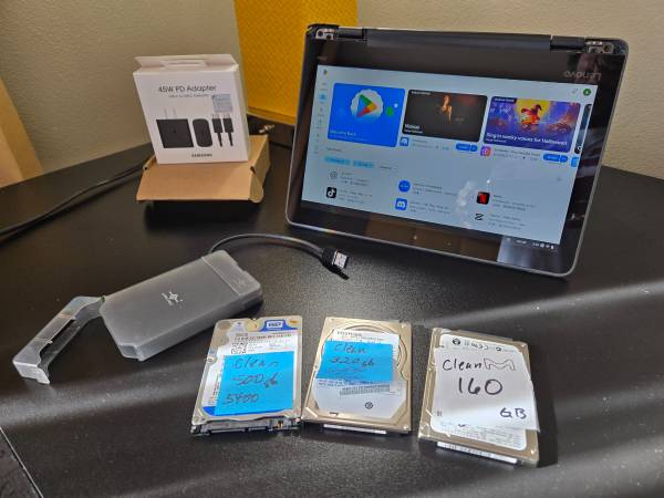 - AVAILABLE (ask me how much you need, I can sell all or none of these extra drives) up to 1 TB external storage on several drives with a interchangeable adapter