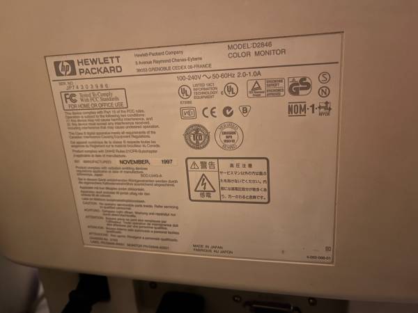 This HP P1100 is a rebrand of the Sony GDM-500PS 21in Monitor. Here are the specs for the monitor: