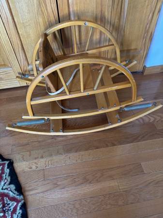 Vintage wooden rocker for kids, featuring playful duck design. This is a very cute little vintage rocker cute for little girls to play with their dollies comes from a smoke, free pet free home