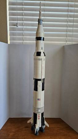 This is a used, complete LEGO Ideas NASA Apollo Saturn V Rocket (set 21309), which includes rocket, mini model of lunar lander, and mini model of return module. This set has 1,969 pieces (in honor of the year of the Apollo 11 lunar landing by Neil Armstrong and Buzz Aldrin). THIS SET IS RETIRED. Instructions are included.