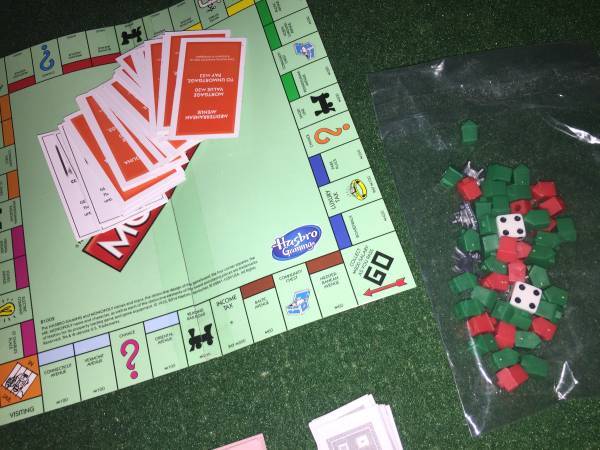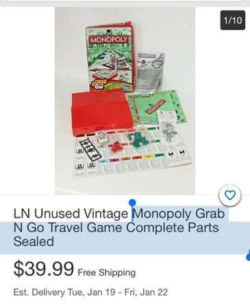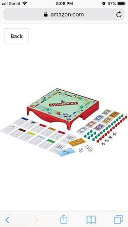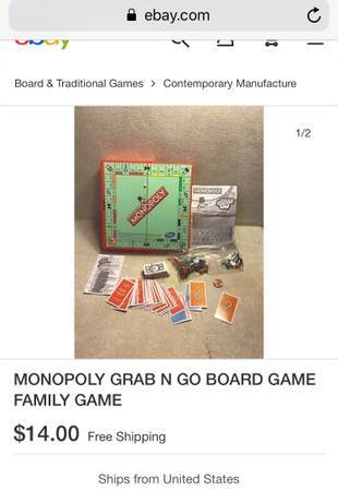 •Hasbro Gaming Monopoly Grab & Go Game, for ages 8+, 2-4 players (lightly used)