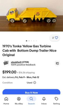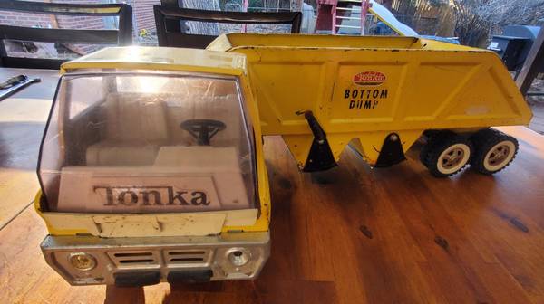 1970's Tonka Yellow Gas Turbine Cab- with Bottom Dump Trailer! Nice original truck! Price Reduced $100 Cash! No Lowballers Serious Inquiries Only call NO EMAILS Text's and Calls only Thank you.