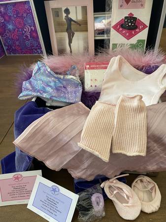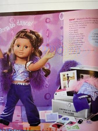 American Girl Marisol silver theater trunk retired includes ballet and jazz outfit for the doll with accessories in good condition. Must see. Doll not included