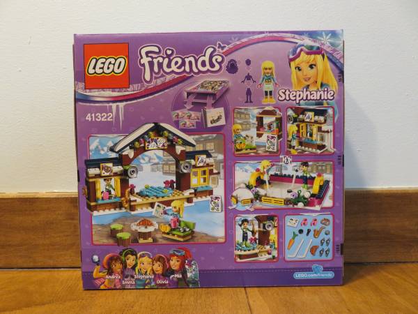 Description: This listing is for one LEGO Friends 41322 Snow Resort Ice Rink building set from LEGO. This set was available starting in 2017 and is now retired. This set contains a total of 307 pieces. There are 2 mini-dolls included and both of them are currently unique to this set. It is in the original packaging and has never been opened. LEGO item number is 6174711.