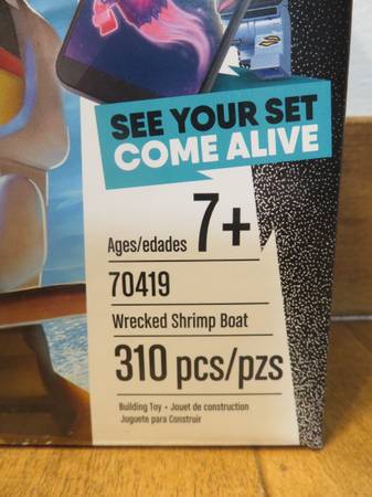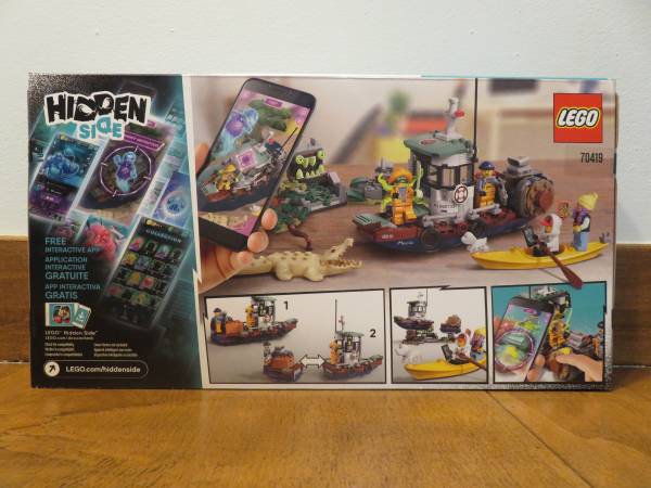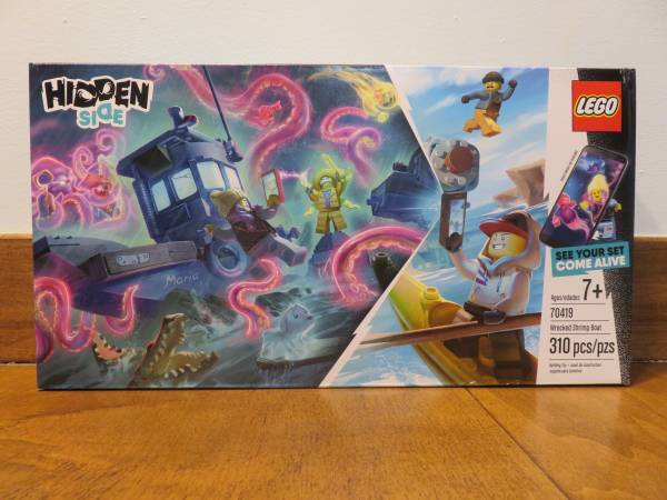 Description: This listing is for one LEGO Hidden Side 70419 Wrecked Shrimp Boat building set from LEGO. This set was available starting in 2019 and is now retired. This set contains a total of 310 pieces. There are 4 minifigures included and the versions of Captain Jonas and Jonas Jr are currently unique to this set. It is in the original packaging and has never been opened. LEGO item number is 6250492. Note that the LEGO app noted in the official description may no longer be available for download.