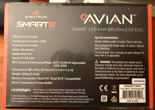 This is a brand new unopened in the box Spektrum Avian Smart 120 amp ESC for RC airplanes. It was purchased by mistake. I paid $240 brand new.