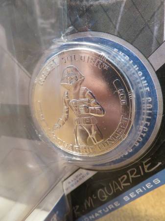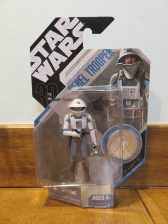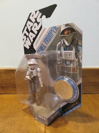 Description: This listing is for one Concept Rebel Trooper action figure from Hasbro. This item is from the Star Wars 30th Anniversary Collection and part of the McQuarrie Signature Series within that collection. This item was available starting in 2007. Accessories include a clamshell helmet (2 parts), removeable chest armor, blaster pistol, and a Silver Collector Coin. The card back has a date stamp of 73391 on the back. It is in the original packaging and has never been opened. Also included is the ProTech Star Case to maintain its condition. Item was removed from the Star Case for pictures and then returned to the case.