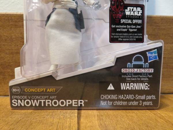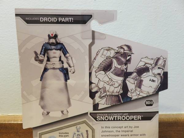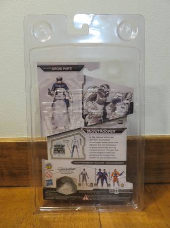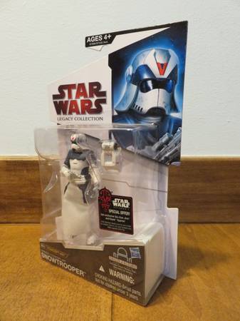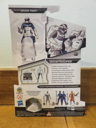 Description: This listing is for one Episode V Concept Art Snowtrooper action figure by Hasbro. This figure is from the Star Wars Legacy collection which has the red theme. This figure is based on The Empire Strikes Back concept art from Joe Johnston. This figure was available starting in 2009. Accessories include a blaster and removeable backpack. As part of the Build A Droid series, this figure includes the right leg of the HK-50 droid. It is in the original packaging and has never been opened. Also included is a protective case which is from Hasbro and has the Star Wars logo on the back. Note that the case is too large for figures in this collection. I used it to help preserve the overall condition and did not have the proper case size for this figure range.