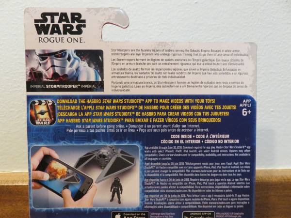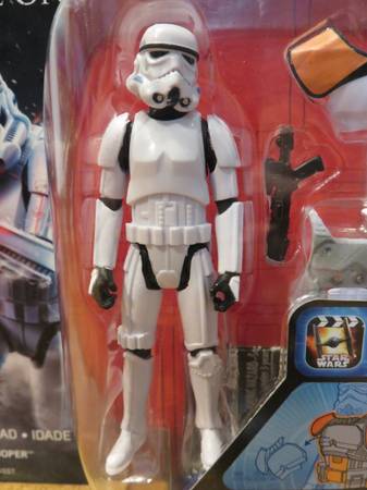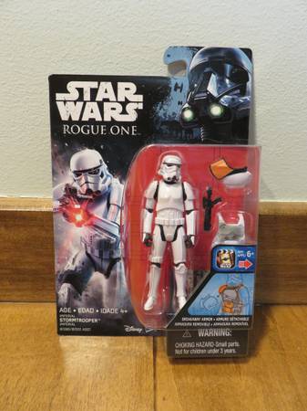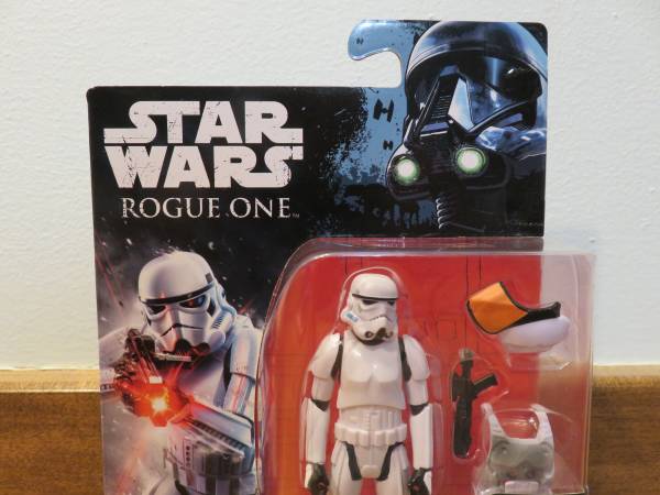 Description: This listing is for one Imperial Stormtrooper action figure by Hasbro. This figure is from the Star Wars Rogue One collection which has the Imperial Death Trooper art on the card. This figure was available in 2016. Accessories include an E-11 blaster, interchangeable battle-damaged armor, removable officer's pauldron piece, and removable belly armor. It is in the original packaging and has never been opened.