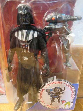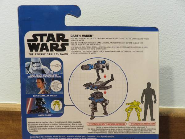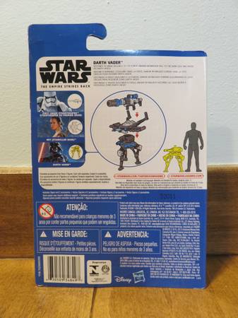 Description: This listing is for one Darth Vader action figure by Hasbro. This figure is from the Star Wars The Force Awakens collection which has the Kylo Ren art on the card. Although released with The Force Awakens collection, this figure is based on The Empire Strikes Back and has artwork showing Vader in the snow. This figure was available in 2015. Accessories include a lightsaber and Seeker Droid. It is in the original packaging and has never been opened.