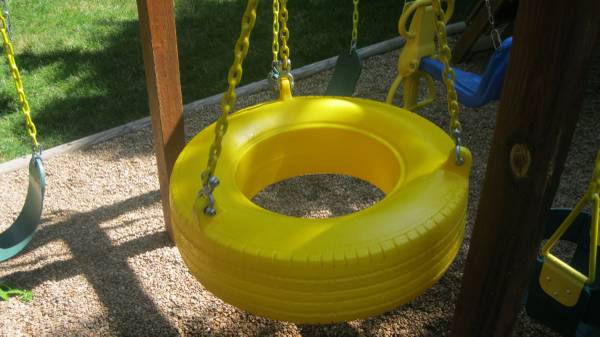 Swing Set Stuff Inc. Tire swing with swivel hangar and lag bolts and Carabiners. Everything included. I will attach a link for details below. Never has been mounted on the swivel hangar. Will not respond to, Is this available. I will delete ad promptly when sold.