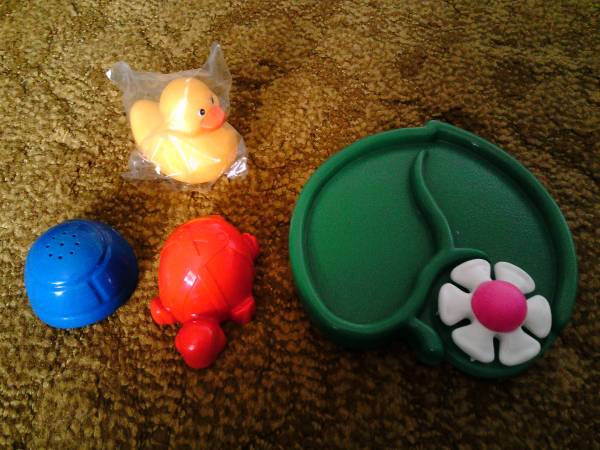 * This toy is Brand-New, but I had it in a couple garage sales, so the box got ruined in the sun, but the toys inside are new & have never been played with.